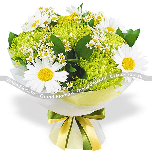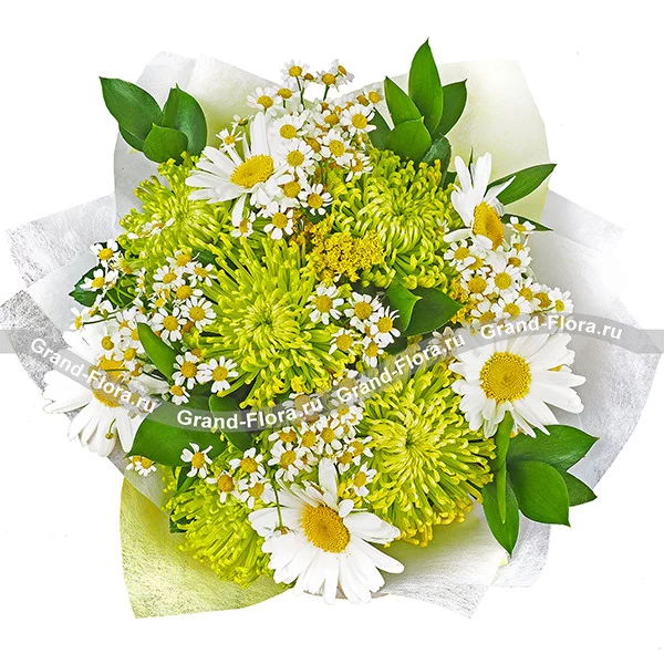 Романтические мгновения - букет из ромашки и хризантемы